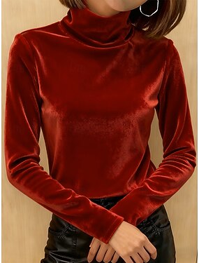 Per donna Maglietta Stampato A Strati Tinta unica Grafico Elegante Vintage Moda Manica Lunga Dolcevita Top Regolari Quotidiano Uscire Weekend Vino Blu Reale Viola Oro Verde Autunno Inverno