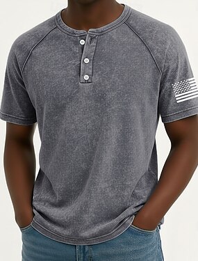 Per uomo Vintage Bandiera Americana Maglietta Top Henley Camicia lavata Manica Corta Vintage Designer Casual Casuale Quotidiano All'aperto Estate Primavera Tutte le stagioni Blu chiaro Viola Grigio