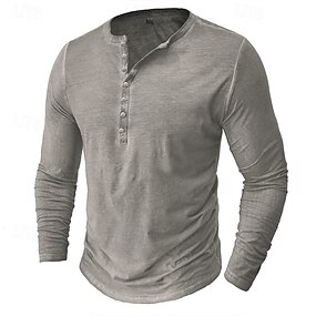 Per uomo Maglia Henley Camicia 100% cotone lavaggio acido Manica Corta Henley Estate Primavera Autunno Semplice Retrò Vintage Casual Stile Vintage Lavato Casuale Blu chiaro Marrone scuro Nero