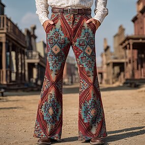 Per uomo Motivo Geometrico Etnico Pantaloni da discoteca Pantaloni a zampa d'elefante anni '60 e '70 Misura del girovita medio Western Vintage Retrò All'aperto Vacanza Casuale Tasche Laterali