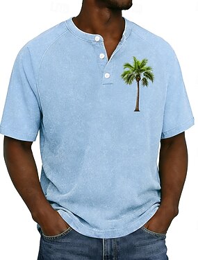 Per uomo Albero di Cocco Vintage Maglietta Top Henley Camicia lavata Manica Corta Vintage Designer Casual Casuale Quotidiano All'aperto Estate Primavera Tutte le stagioni Blu chiaro Viola Grigio