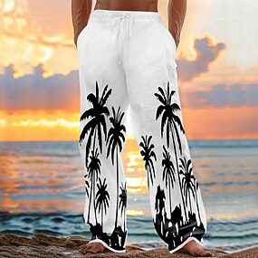Per uomo Pantaloni di Lino Pantaloni Pantaloni Estivi Pantaloni Larghi Pantaloni da Spiaggia Coulisse Elastico in vita Gamba Dritta Albero di Cocco Comodità Traspirante Lunghezza intera Casuale