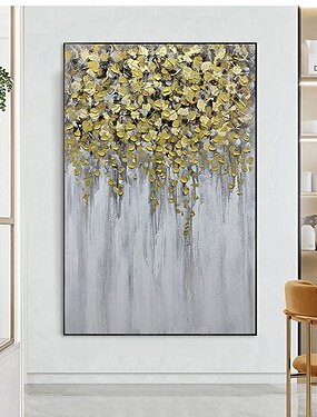 Pittura A Olio Fatta A Mano Su Tela Decorazione Della Parete Di Arte Moderna Astratta Piante Da Fiore Foglia D'oro Per La Decorazione Domestica Pittura Arrotolata Senza Cornice Non Allungata