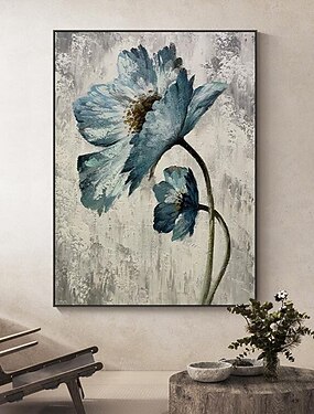 Dipinto A Mano A Olio Dipinto A Mano Di Arte Della Parete Fiore Blu Dipinti Su Tela Decorazione Della Casa Decor Tela Arrotolata Senza Cornice Non Allungata