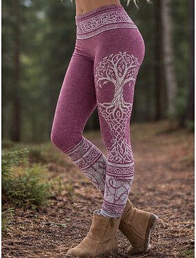 Per donna Vichingo Leggings Leggings comodi Vacanza Vintage Stile Etnico Lunghezza intera Vita Alta Albero Farfalla Stampa Confortevole Elasticizzato Casuale Quotidiano Vacanza Rosa Primavera Autunno
