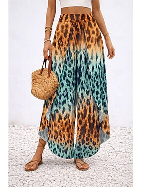 Per donna Gamba larga Pantaloni Eleganti Pantaloni Vacanza Moda Elegante Lunghezza intera Vita Alta Grafico Leopardo Inelastico Casuale Quotidiano Vacanza Blu Estate Primavera Autunno Inverno