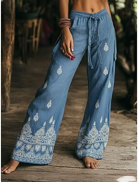 Per donna Gamba larga Pantaloni Vacanza Streetwear Casual Lunghezza intera Vita media Grafico Geometrico Coulisse Tasca Stampa Confortevole Quotidiano All'aperto Vacanza Blu Primavera Autunno