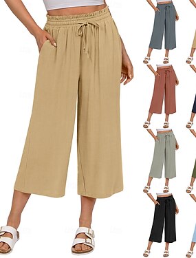 Per donna Pantaloni capri Finto cotone e lino Pantaloni Pantaloni Estivi Vacanza Essenziale Lunghezza al polpaccio Vita Alta Semplice Coulisse Tasca Fascia Elastica Comodità Morbido Traspirante