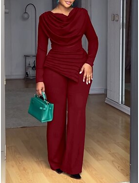 Per donna Normale Tuta Elegante Tinta unica Manica Lunga Gamba larga Girocollo Vita alta Vacanza Quotidiano Vestibilità regolare Nero Vino Marrone Primavera
