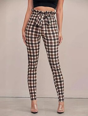 Per donna Pantaloni casual in maglia Vita Alta Atletico Pilates Corsa Pantaloni Plaid Cachi Autunno Gli sport Abbigliamento sportivo