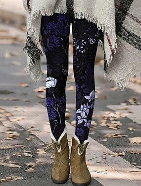 Per donna Pantaloni Leggings Streetwear Casual Lunghezza intera Vita Alta Floreale Elastico in vita Stampato Traspirabilità Confortevole Elasticizzato Vacanza Streetwear Abbigliamento quotidiano Viola