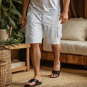 Per uomo Pantaloncini modello cargo Pantaloncini di lino Pantaloncini estivi Pantaloncini da spiaggia A cordoncino Vita elastica Multi tasca Liscio Comfort Traspirante Lunghezza del ginocchio Interni