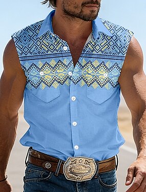 Per uomo Motivo Geometrico Etnico Camicia Western Camicia da cowboy Maglietta senza maniche Senza Maniche Stile Western All'aperto Lavoro Casual Estate Primavera Collo ripiegato Stampa 3D Camicie da