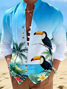 Per uomo Albero di Cocco Fiori tropicali Tucani Camicie hawaiane Camicia Aloha Camicia con colletto alla coreana Manica Lunga Hawaiano Vacanza al Mare Estate Primavera Collo alla coreana Colletto