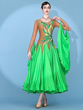 abito da ballo da sala con ricami e strass, da donna, a maniche lunghe, per danza moderna, valzer