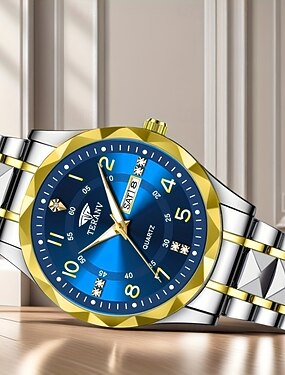 Orologio al quarzo da uomo alla moda del marchio Teranv con quadrante a rombo, IPX7 impermeabile, doppio calendario, orologio con striscia di acciaio luminoso, orologio da lavoro