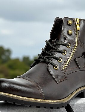 stivali stringati da uomo in similpelle marrone con motivo coccodrillo e suola robusta, eleganti e resistenti per l'uso all'aperto e casual
