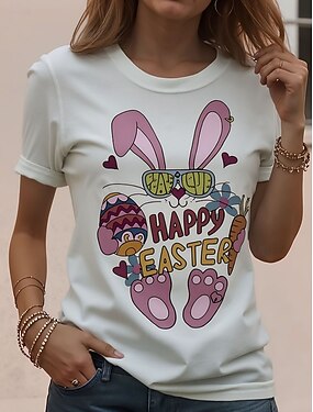 Pasqua Per donna Maglietta Stampato Floreale Grafico Animale Elegante Classico Casual Manica Corta Girocollo Top Regolari Quotidiano Blu Bianco Verde Estate Primavera