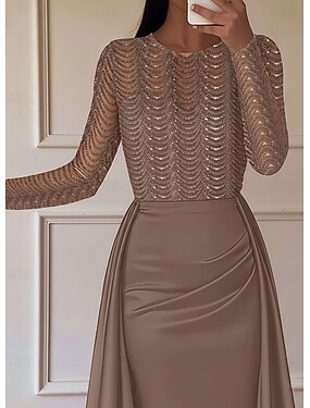 Tubino Colonna Lunghezza al pavimento Abito Formale Abito da sera Abito da Sera Elegante Vintage Manica Lunga Girocollo Festa serale Formale Poliestere con Cristalli Perline Applicazioni