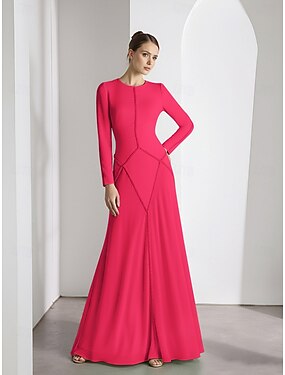 Linea ad A Lunghezza al pavimento Abito da invitata a nozze Abito Formale Abito da sera Abito da cerimonia per signora Manica Lunga Girocollo Elegante Semplice Chiffon Tessuto Elasticizzato con