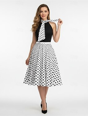 Elegante Classico Anni 1950 Midi Abito a Linea Abito Swing Vestito Svasato Senza maniche Pois Linea ad A Costume Per donna Carnevale Vacanza Abbigliamento Quotidiano Addio al Nubilato Adulti Vestito