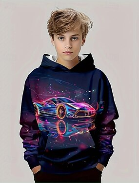 Ragazzi 3D Auto Set Felpa con cappuccio & Pantaloni della tuta Tuta sportiva Tute da ginnastica Manica Lunga Primavera Autunno Quotidiano Essenziale Casual Bambini 4-12 Anni Con cappuccio All'aperto