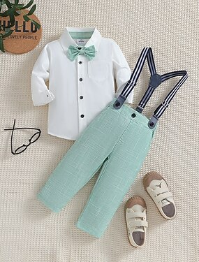 3 pezzi Completo da paggetto Da ragazzo Bambino Bambino (1-4 anni) Camicia e pantaloni Scuola Formale Feste Essenziale Informale Gentile Tinta unica A V Bianco Cotone