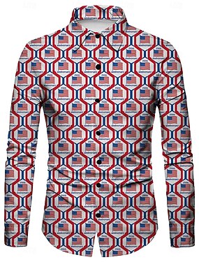 Blusa / Camicia Geometrico Giornata dell'indipendenza Retrò Vintage Anni '70 Maniche corte per Per uomo Adulti  per 4 Luglio Feste Giorno dell'Indipendenza
