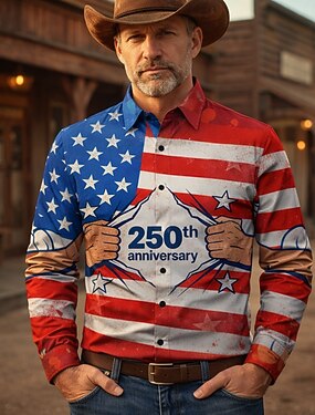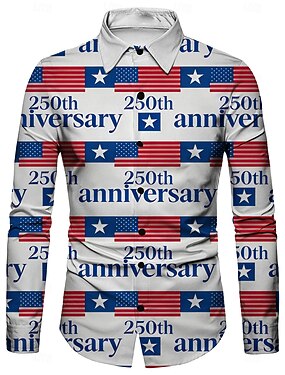 250° anniversario USA Retrò Vintage Anni '70 Camicia Camicia Aloha Lunghe Hippie Geometrico Etnico Costume Per uomo Mascherata 4 Luglio Feste Giorno dell'Indipendenza Adulti Camicia