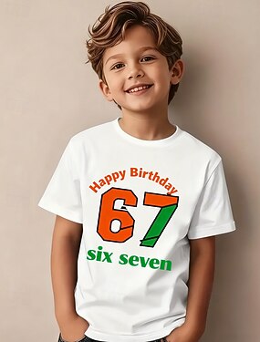 Cotone Bambini Ragazzi Nero Bianco Grafico Gergo divertente 67 Maglietta Blusa Girocollo Manica Corta All'aperto Abbigliamento Quotidiano Moda Streetwear Designer Stampa Estate