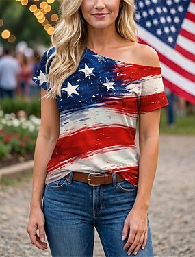 250° anniversario USA Retrò Vintage Anni '80 T-shirt Monospalla Maniche corte Bandiera USA Costume Per donna 4 Luglio Giorno dell'Indipendenza Adulti Maglietta