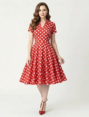 Anni 1950 Hepburn Retrò Vintage Midi Abito a Linea Abito Swing Vestito Svasato Maniche corte A Pois Linea ad A Costume Per donna Carnevale San Valentino Mascherata Vacanza Abbigliamento Quotidiano