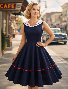 Anni 1950 Abito da cocktail Abito vintage Lunghezza al ginocchio Vestito Rockabilly Vestito Svasato Senza maniche Tinta unica Costume Per donna Carnevale Mascherata Balli di fine anno Festa serale