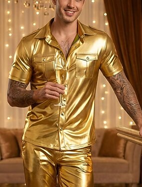 Retrò Vintage Anni '70 Camicia Hippie Disco Metallico Lucido Costume Per uomo Halloween Carnevale Parata dell'Orgoglio Mese dell'orgoglio Adulti Camicia Primavera & Estate