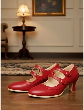 scarpe mary jane rosse vintage da donna anni '50 con doppio bottone, perfette per occasioni formali, feste e uso quotidiano