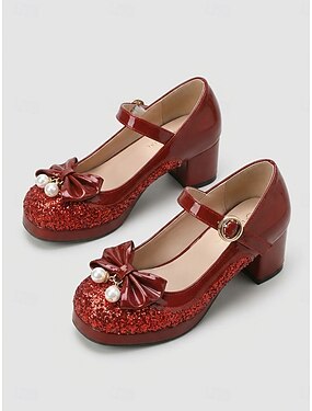 scarpe mary jane rosse da donna con fiocco e dettagli in perle – elegante stile lolita anni '50, perfette per feste di Natale, eventi formali e occasioni speciali