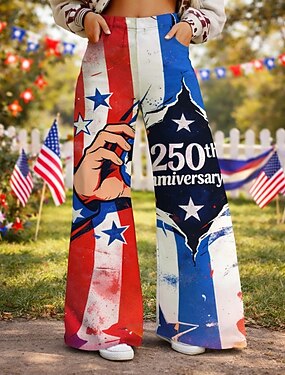 250° anniversario USA Retrò Vintage Anni '70 Pantaloni Pantaloni a gamba larga Hippie Disco Vita alta Costume Per donna Mascherata 4 Luglio Feste Giorno dell'Indipendenza Adulti Pantaloni