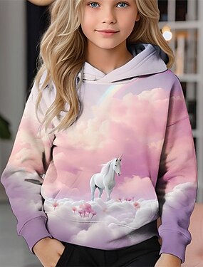 Ragazze 3D Unicorno Felpa con Cappuccio Manica Lunga Autunno Inverno Moda Adorabile Essenziale Bambini 4-12 Anni Con cappuccio All'aperto Casuale Quotidiano Vestibilità regolare