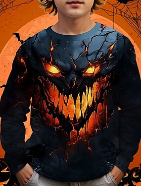 Halloween Ragazzi 3D Grafico Maglietta Manica Lunga Primavera Autunno Moda Essenziale Bambini 4-12 Anni Girocollo All'aperto Casuale Quotidiano Vestibilità regolare
