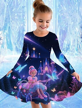 ragazze' 3D Cartoni animati Farfalla Abito Manica Lunga Estate Primavera Vacanza Quotidiano Ferie Principessa Bello Dolce Bambini 4-12 Anni Vestito Casual Abito a trapezio Lunghezza al ginocchio