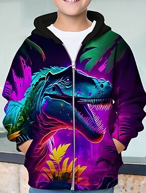 Ragazzi 3D Dinosauro Felpa con Cappuccio Cappotto Abbigliamento Esterno Manica Lunga Primavera Autunno Adorabile Canotta sportiva Bambini 4-12 Anni Con cerniera Streetwear Quotidiano Vestibilit