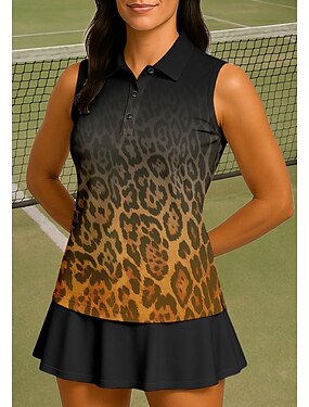 Per donna Leopardo Sfumatura Maglietta sportiva Polo da golf Canotta Maglia da tennis Senza Maniche Floreale Bottoni UPF50+ Resistente ai Raggi UV Alta elasticità Traspirante Pallavolo Tennis Golf