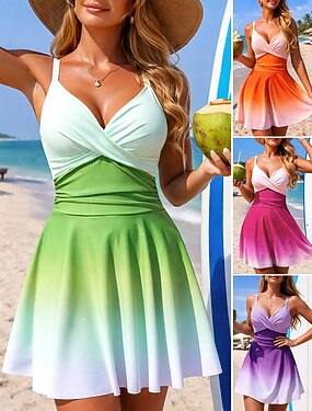 Per donna Costume da bagno One Piece Costume da bagno con gonna Sfumatura Asciugatura Rapida Elastico Senza Maniche Costume da Bagno Costume da bagno Surf Spiaggia Nuoto Estate