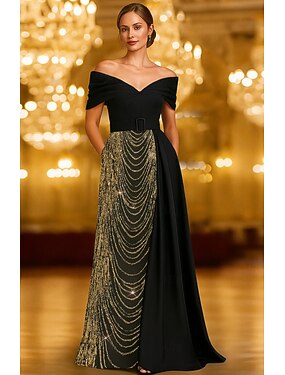 Linea ad A Abito Lunghezza al pavimento Lunghezza alla caviglia Abito da Cocktail Abito da invitata a nozze Abito da cerimonia per signora Manica Corta Scollo a Barca Elegante Semplice Casual Formale