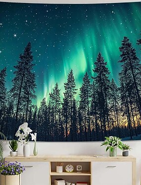 arazzo aurora boreale aurora boreale foresta di pini cielo notturno arazzo da parete natura paesaggio decorazione per camera da letto soggiorno sala yoga spazio per meditazione