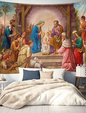 Arazzo medievale Arazzo del Medioevo Arte religiosa Grande arazzo decorativo Foto sfondo per casa Decorazione per camera da letto soggiorno Cristo della Misericordia tra i profeti Davide e Geremia