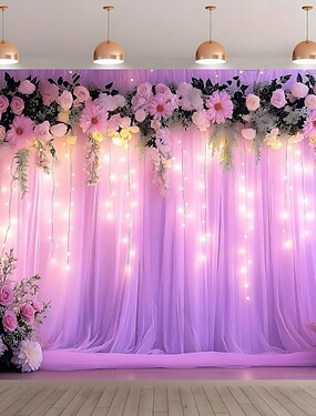 Arazzo floreale romantico per San Valentino, stampa piatta 2D, decorato con luci LED calde, sfondo perfetto per una bella decorazione per feste e un'accogliente atmosfera per San Valentino