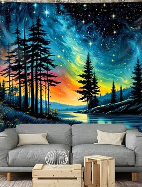 arazzo aurora boreale notte stellata foresta arazzo da parete paesaggio psichedelico natura per camera da letto soggiorno sala yoga spazio di meditazione arredamento