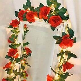 luci artificiali a forma di rosa, 2 m, 20 LED, con piante verdi e viti, per decorazioni da favola, per matrimoni, San Valentino, balconi, giardini, archi, feste