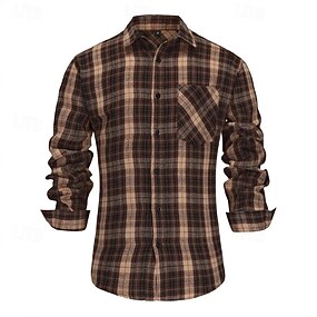 Per uomo Camicia Camicia Estiva Camicia casual Camicia da Spiaggia Camicia con Bottoni Camicie a quadri Caffè Manica Lunga Plaid Bavero Vacanza Camicia hawaiana Bottonato Abbigliamento Moda Casual